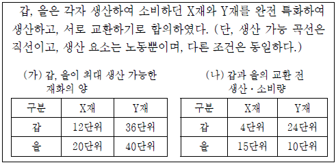 - ② 갑은 Y재에, 을은 X재에 비교 우위가 있다.