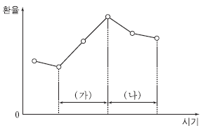 15. 그림은 갑국의 최근 환율 변화 추세를 나타낸다. (가), (나)구간에 대한 설명으로 가장 적절한 것은? (단, 환율 상승은 갑국의