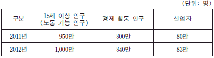 12. 표는 갑국의 고용 통계이다. 이에 대한 분석으로 옳은 것은?