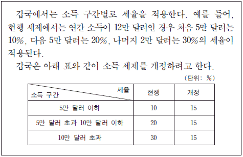 5. 다음 자료에서 갑국 소득 세제의 개정으로 나타날 변화에 대한 분석으로 옳은 것은? [3점]