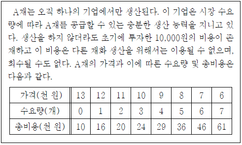 8. 다음 A재 시장 상황에 대한 분석으로 옳은 것은? [3점]