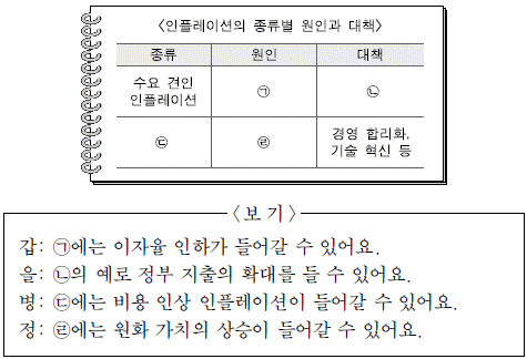 17. 다음은 학생들이 '발생 원인에 따른 인플레이션의 종류와 대책'에 대해 조사하여 발표한 내용이다. 옳게 발표한 학생을 <보기>에서 고른 것은?