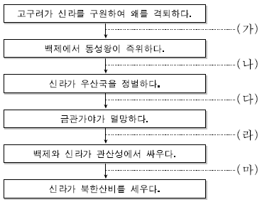 - ⑤ (마) - 신라는 여세를 몰아 백제로부터 한강 하류 지역까지 빼앗았다.