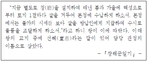 - ④ 서리가 공물을 대신 내고 그 대가를 많이 챙겼다.