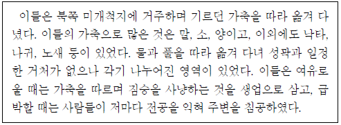 13. 다음과 같은 생활 방식을 가지고 있는 사회의 전근대 시기의 모습으로 적절하지 않은 것은? 이들은 북쪽 미개척지에 거주하며 기르던 가축을 따라 옮겨 다