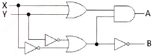 16. 다음 논리회로에서 입력 X는 0, Y는 1일 때 출력값 및 논리회로와 등가인 논리레이트(Logic Gate)를 표현한 것으로 옳은 것은?