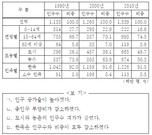 15. 표는 중국의 인구에 관한 것이다. 이에 대한 옳은 분석을 <보기>에서 고른 것은? [3점]