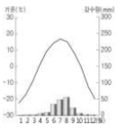 - ① 연교차, 7월 강수량, 1월 강수량