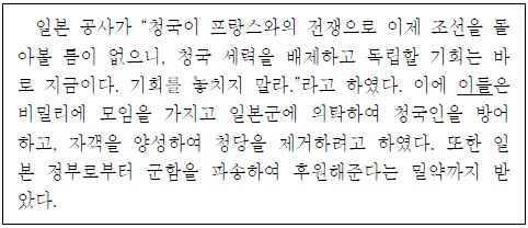 - ① 흥선 대원군의 대외 정책을 계승하였다.