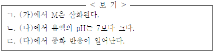 14. 다음은 알칼리 금속 M의 성질을 알아보기 위한 실험이다. 이에 대한 옳은 설명만을 <보기>에서 있는 대로 고른 것은?
