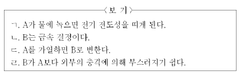 1. 표는 물질 A~D의 몇 가지 성질을 나타낸 것이다. 이에 대한 설명으로 옳은 것을 <보기>에서 모두 고른 것은?