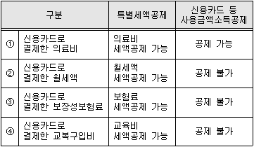 14. 다음 중 근로소득 연말정산 시 「특별세액공제」와 「신용카드등 사용금액 소득공제」의 중복 적용 여부가 틀린 것은?