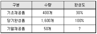 9. 당사는 선입선출법에 따른 종합원가계산에 의하여 제품의 원가를 계산한다. 당기에 발생한 가공비는 15,000,000원이고 가공비 완성품 단위당 원가는 10,000원이다. 다음의 재공품 완성도를 참고하여 기말재공품 완성도를 구하시오(단, 가공비는 공정 전반에 걸쳐 균등하게 발생한다).