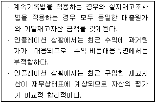 2. 재고자산의 평가방법 중에서 다음에서 설명하고 있는 재고자산의 원가흐름의 가정은 무엇인가?
