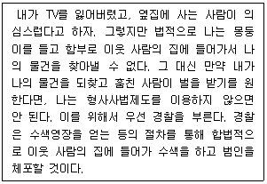 1. 다음의 예는 코헨(Howard Cohen)과 펠드버그(Michael Feldberg)가 제안한 '사회계약설적 접근을 통해 경찰활동이 지향해야 할 다섯 가지 기준' 중 무엇에 해당하는가?