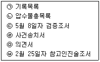 9. 다음 중 수사서류의 편철순서가 바르게 나열된 것은?