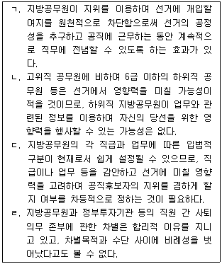 - ④ 甲을 일반 공무원보다 먼저 사퇴하도록 하는 이유는 일반 공무원보다 甲이 선거의 공정성을 저해할 가능성이 크다고 보기 때문이다.