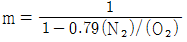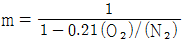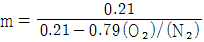 14. 연도가스 분석에서 CO가 전혀 검출되지 않았고, 산소와 질소가 각각 (O)Nm3/kg 연료, (N2)Nm3/kg 연료일 때 공기비(과잉공기율)는 어떻게 표시되는가?