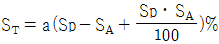 70. 금속공업로의 에너지 절감대책 기본과제로서 공연비 개선의 일환으로 공기비 수정과 공기예열의 상승효과를 얻을 수 있는 식으로 적당한 것은? (단, 연료는 중유 1종 1호를 사용할 경우, ST = 전 절약율(%), Sp = 공기예열에 의한 절약율(%) SA = 공기비 수정에 의한 절약율(%), a = 리큐퍼레이터 등의 특성에 의한 계수(a≒1))