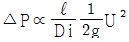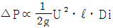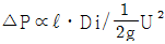 74. 열교환기 설계에서 열교환 유체의 압력강하는 중요한 설계인자이다. 관의 내경, 길이 및 평균유속을 Di, ℓ , U라 할 때 압력강하량 △P와 이들 사이의 관계식으로 옳은 것은?