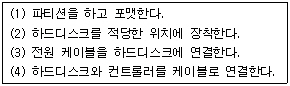 55. 다음 중 하드디스크를 설치하는 순서가 올바르게 나열된 것은?
