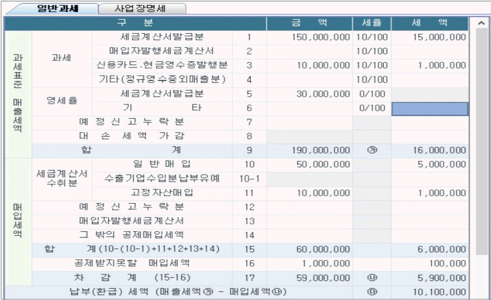 10. 다음 핵심 ERP 의 세무구분 화면이다. 이 중 매입처별 세금계산서 합계표에 반영되는 세무구분 개수는?