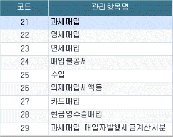 9. 다음 화면은 핵심ERP 매입세무구분 항목이다. 각 항목과 거래내역의 연결이 옳지 않은 것은?
