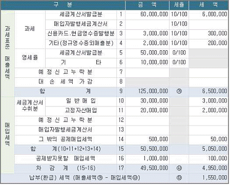 12. 다음은 부가가치세신고서의 일부이다. 이를 설명한 것으로 가장 옳지 않은 것은 ?