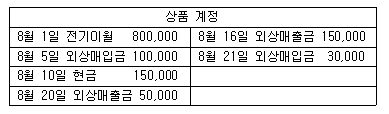 19. 다음 [보기]의 상품계정을 참고로 하여 계산한 8월말 현재 상품매입총 액은 얼마인가?