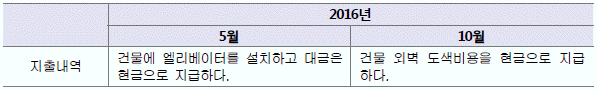 7. 다음은 (주)한공이 본사 건물에 대하여 지출한 금액의 내역이다. 이를 회계처리할 때 차변의 계정과목으로 옳은 것은?(순서대로 5월 10월)