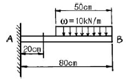 13. 그림과 같은 외팔보에 있어서 고정단에서 20 cm되는 점의 굽힘모멘트 M은 몇 kN · m인가?