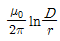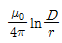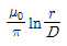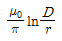 20. 두 평형 왕복 도선사이의 도선 외부의 자기인덕턴스는 몇 H/m인가? (단, r은 도선의 반지름, D는 두 왕복 도선 사이의 거리이다.)