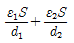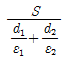 4. 면적 S[m2], 간격 d[m]인 평행판 콘덴서에 그림과 같이 두께 d1, d2[m]이며 유전율 ℇ1, ℇ2[F/m]인 두 유전체를 극판 간에 평행으로 채웠을 때 정전용량 [F]은?