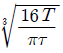 19. 토션바(torsion bar)는 원형봉 한쪽 끝은 고정하고 다른 쪽 끝에 비틀림 모멘트 T를 작용하도록 하는 기계요소이다. 허용전단 응력을 τ, 안전계수(safety factor)를 2라 할 때, 이 원형봉의 최소 지름을 나타내는 식은?
