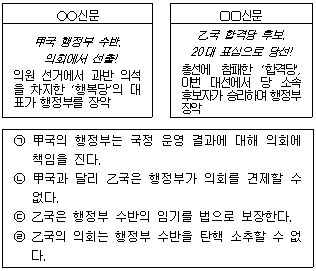 10. 다음은 정치 상황에 대한 기사이다. 이에 대한 옳은 설명을 보기에서 모두 고른 것은? (단, 甲국과 乙국은 전형적인 정부 형태 중 서로 다른 하나이다.)