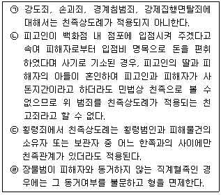 13. 친족상도례에 관한 다음 설명 중 옳은 것은 모두 몇 개인가?(다툼이 있으면 판례에 의함)