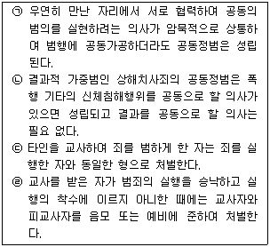 7. 공범에 관한 다음 설명 중 틀린 것은 모두 몇 개인가?(다툼이 있으면 판례에 의함)