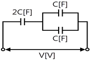 11. 그림과 같은 콘덴서 회로의 합성정전용량은 몇 F인가?