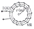 8. 그림과 같은 환상 솔레노이드에서 평균 반지름 r(m), 코일권수 N회에 I(A)의 전류를 흘릴 때 중심 O점의 자계의 세기 H(AT/m)는?