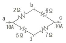 8. 그림과 같이 4개의 저항을 접속하였을 때 전체 전류가 10A라 하면 b, d 간의 전위차는 몇 V인가?