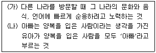 3. 피아제(J. Piaget)는 인지발달이론에서 “인간은 적응을 위해 새로운 경험과 도식을 서로 조정한다”라고 하였다. 다음의 예와 피아제가 제시한 적응의 유형이 옳게 짝지어진 것은? (순서대로 가, 나)