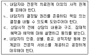 - ① 상담내용에 대해 어떠한 경우라도 비밀을 보장한다.