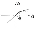 9. 그림과 같은 회로의 입력에 정현파(Vi)를 인가했을 때, 회로의 전달 특성은? (단, 다이오드의 커인전압은 무시하며, 순방향 저항은 Rf이고, Rf<R이다.)
