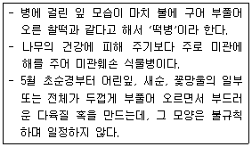 117. 다음 특징의 병해가 주로 발생하는 수목은?
