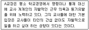 17. 다음 사례와 같은 학교장의 경영방침과 관련 있는 학자의 이론은?