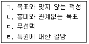 무 선택 / 불 확실한 선택(=확신부족) / 어리석은 선택(현명하지 못한 선택)/ 흥미와 적성의 불일치 (=모순)