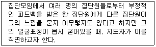 - ④ “oo씨는 아무렇지도 않다고 말하지만, 지금 얼굴이 아주 굳어있고 목소리가 떨리는군요. 내적으로 지금 어떤 불편한 감정이 있는 것 같은데, oo씨의 반응이 궁금하군요.”