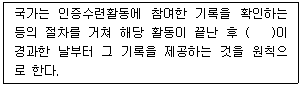 90. 청소년활동진흥법령상 인증수련활동의 기록 유지ㆍ관리 등에 관한 내용이다. ( )에 들어갈 내용은?
