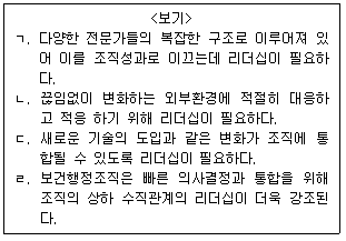 14. <보기>에서 보건행정조직에서 리더십이 강조되는 이유로 옳은 것을 모두 고른 것은?