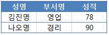 - ① 총점 계열이 보조 축으로 표시된 이중 축 차트이다.